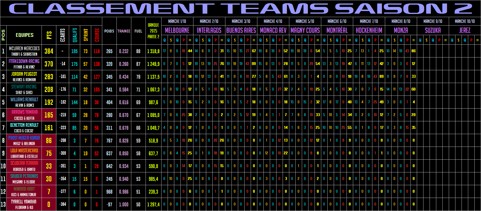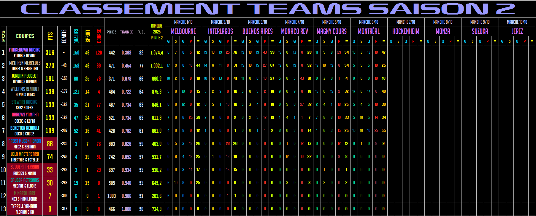 F1BRAIN | FEBRAIN | F1LEGACY | NASCARLEGACY | INDYCARLEGACY | CASHFACTOR | PRONOSFACTOR | LOTOFACTOR | CASINOFACTOR | TOCAFACTOR | F1TAKEDOWN | F1MANAGER | ROCKETLEAGUE | FORNITE | GEOGUESSR | CINÉ REACT | VOS MUSIQUES | MES MUSIQUES Compteur de courses effectuées sur F1Brain Nombre de Grand Prix disputés sur CashFactor : Nombre de Grand Prix disputés sur F1Legacy : Nombre de Grand Prix disputés sur PronosFactor : Nombre de Grand Prix disputés sur FEBrain : Nombre de Grand Prix disputés sur NascarLegacy : Nombre de Grand Prix disputés sur LotoFactor : Nombre de Grand Prix disputés sur F1Takedown : Nombre de Grand Prix disputés sur TocaFactor : Nombre de Grand Prix disputés sur IndycarLegacy : Nombre de Grand Prix disputés sur CasinoFactor : Nombre total de Grand Prix disputés sur rFactor : ---------------------------------------------------------------------------------------------------------- F1Manager S1 | Djeddah 2/24 Nombre total de Grand Prix disputés sur F1Manager :